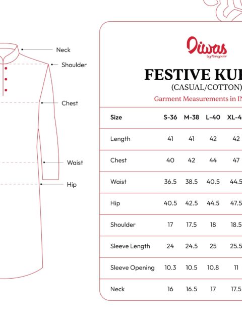 KISAH Men Red Kurta, Cotton, Full Sleaves, Knee Length, Straight, Regular Fit, Mandarin Collar Ethnic wear, 42