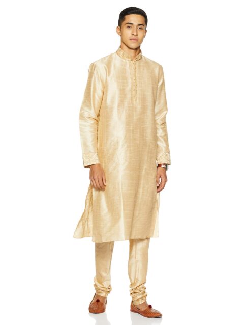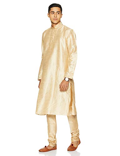 Manyavar Men’s Silk Kurta Churidar (8903035124555_S952136-304-S_Beige)