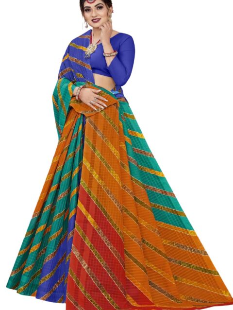 Karishma Sarees Women’s Traditional Multicolour Leheriya Design Pattern Printed Pure Cotton Saree (Navy)