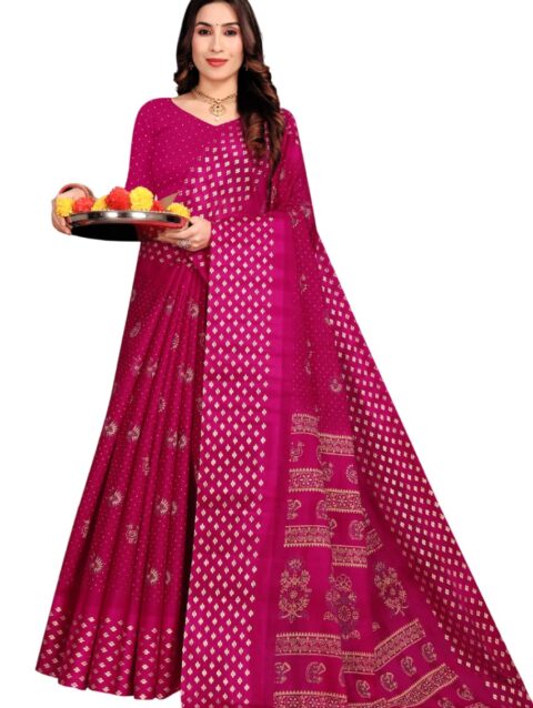 Karishma Sarees Butti Motif Design Gold Printed Festive Cotton Saree (Pink)