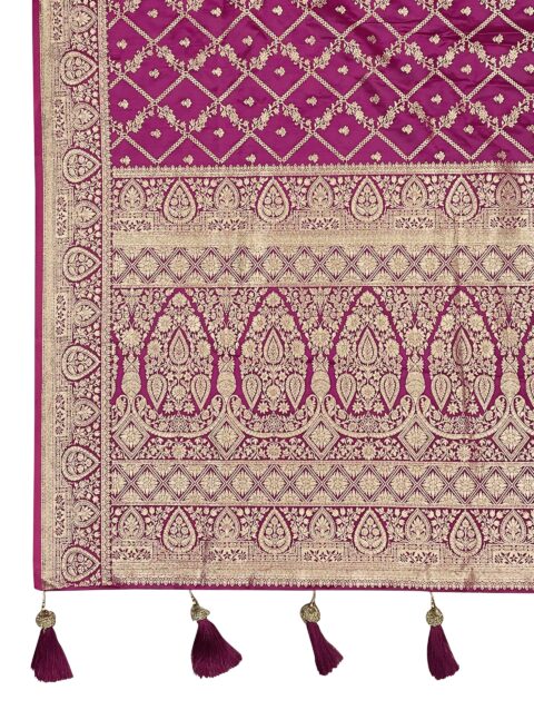 MANOHARI Women’s Most Trendy Banarasi Satin Silk Woven Pink Saree With Heavy Jacquard Work Saree With Blouse Piece_MN1998