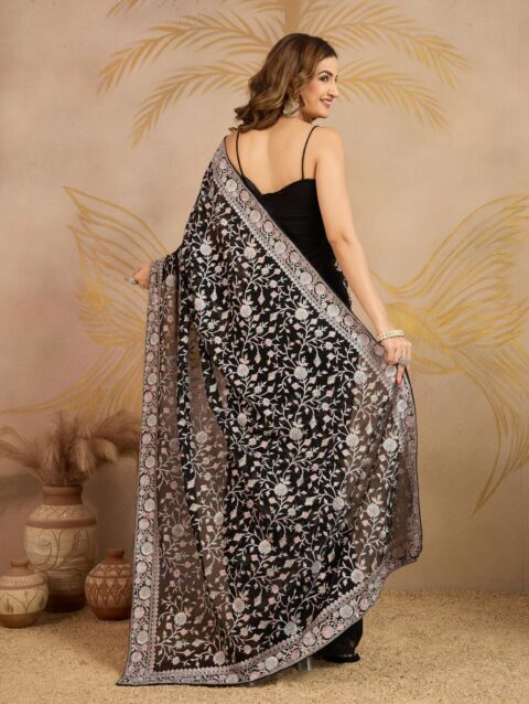 TRENDMALLS Women’s Georgette Siroski work Saree with Unstitched Blouse Piece (K1207-Black)