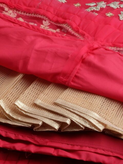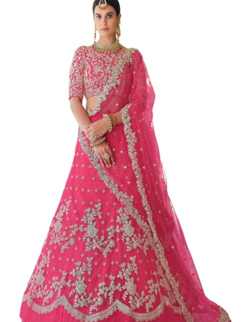 Divine Exim Women’s Net Semi Stitched Lehenga Choli with Dupatta | Thread and Sequin Embroidery Pattern | Traditional, Wedding, Ethnic Wear Lehenga (Pink)