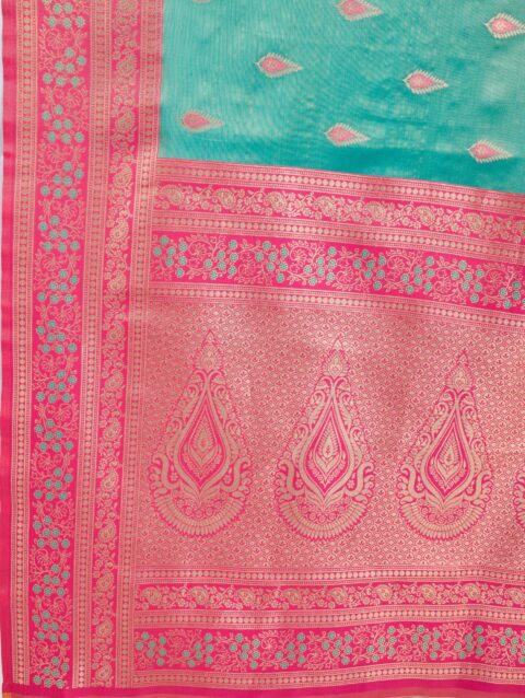Monjolika Fashion Women’s Pashmina Silk Gold Zari Woven Saree With Unstitched Blouse Piece (55706_ Color) (Pista Green)