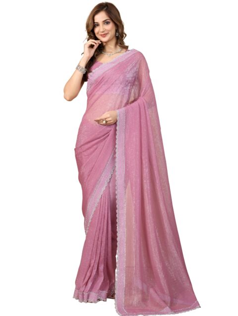 TRENDMALLS Women’s Art Silk Siroski Work Saree with Unstitch Blouse Piece (K1151-Pink)