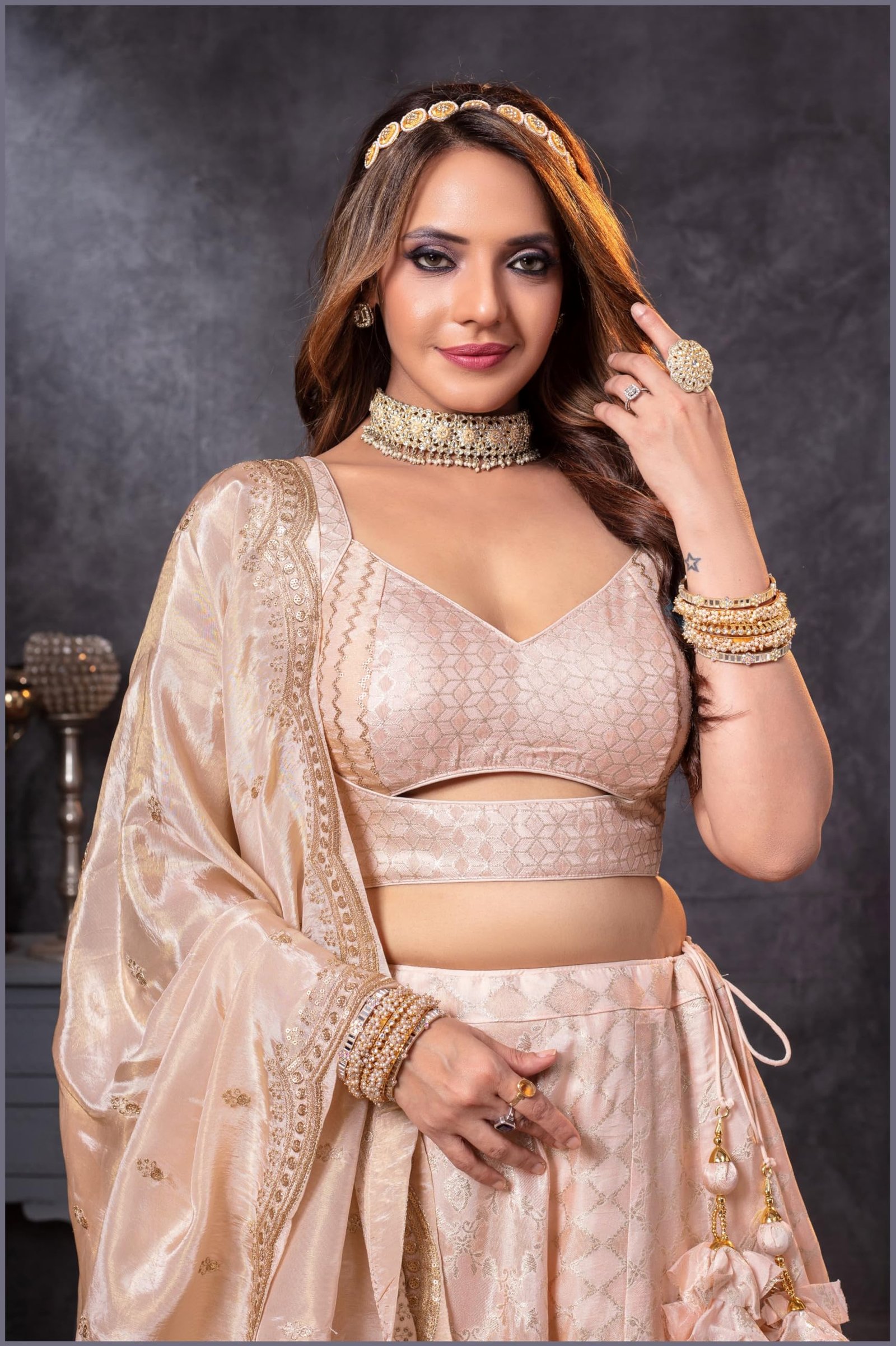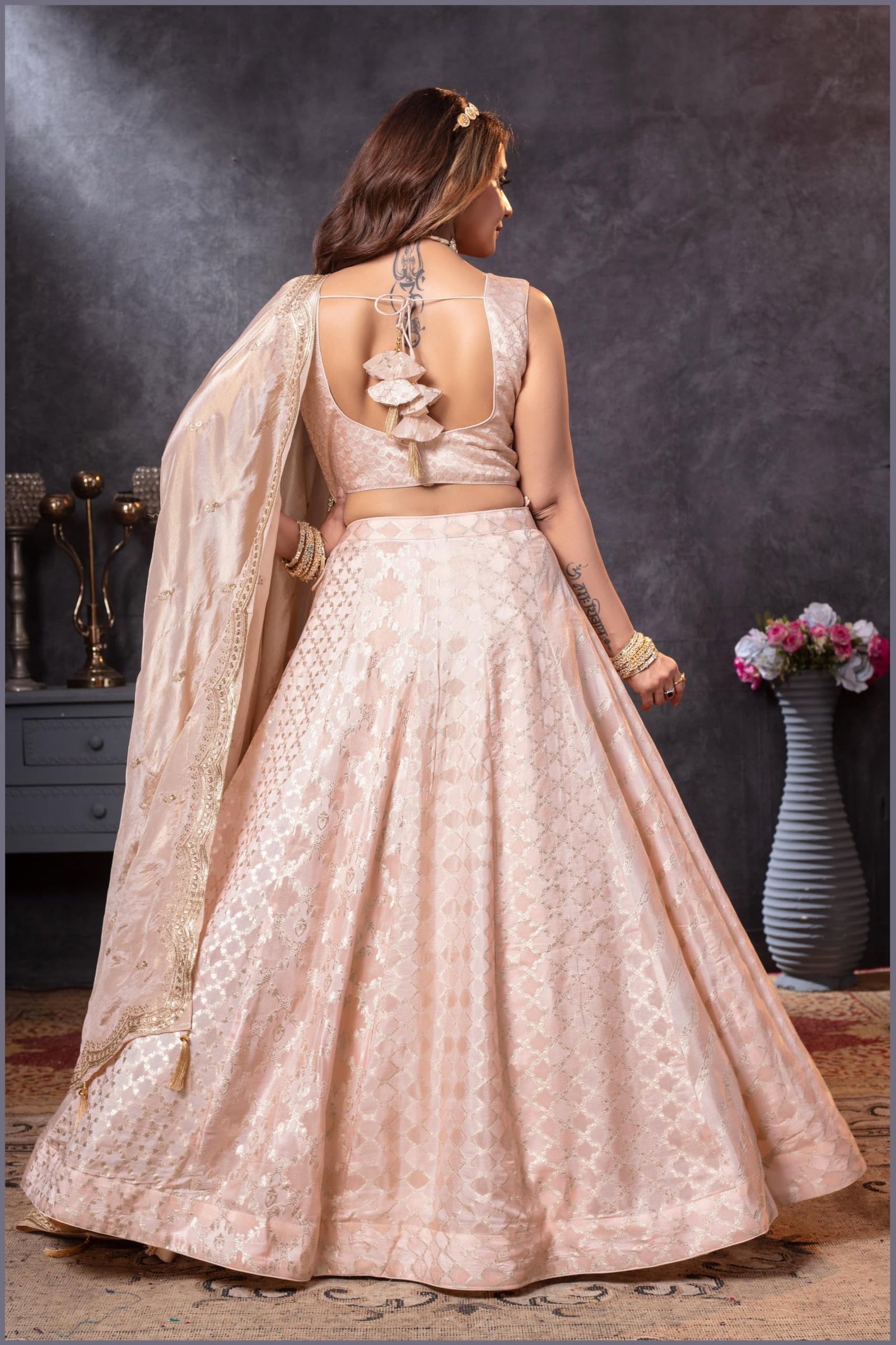 ADHIA Women's Banarasi Silk Lehenga, Dupatta & Blouse Set | Traditional Wear Lehenga Choli for Women (Light Pink, L)