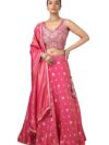 JIHU CULTURE Pink Organza Zari Sequence Embroidery Work Semi-Sttiched Lehenga Choli Set For Women