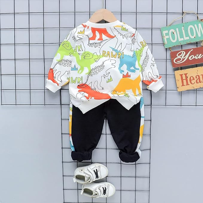 - Items Included – 1 Dino Printed Top , 1Joggers | Cotton Printed sweatshirt for boys and baby boys