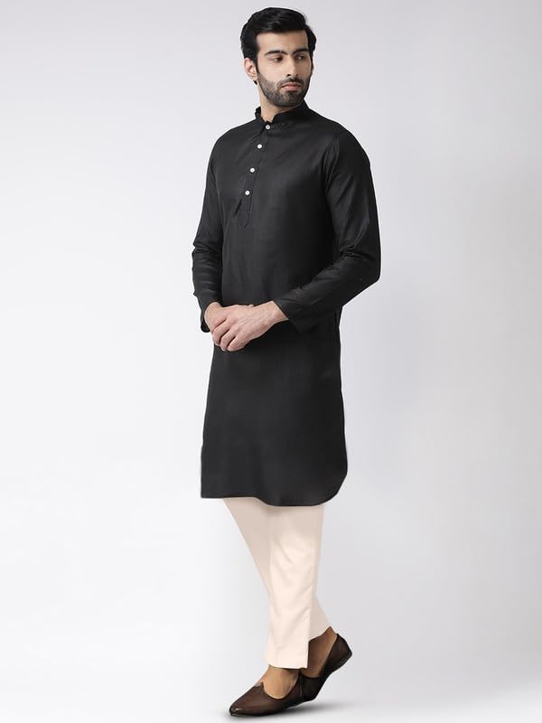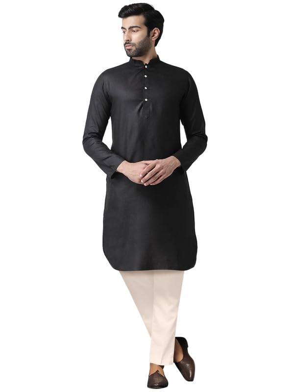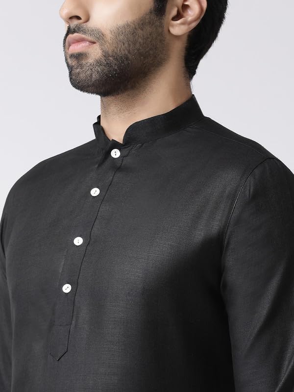 KISAH Men’s Cotton Blend Long Sleeves Regular Fit Solid Black Kurta Trousers Set (36)