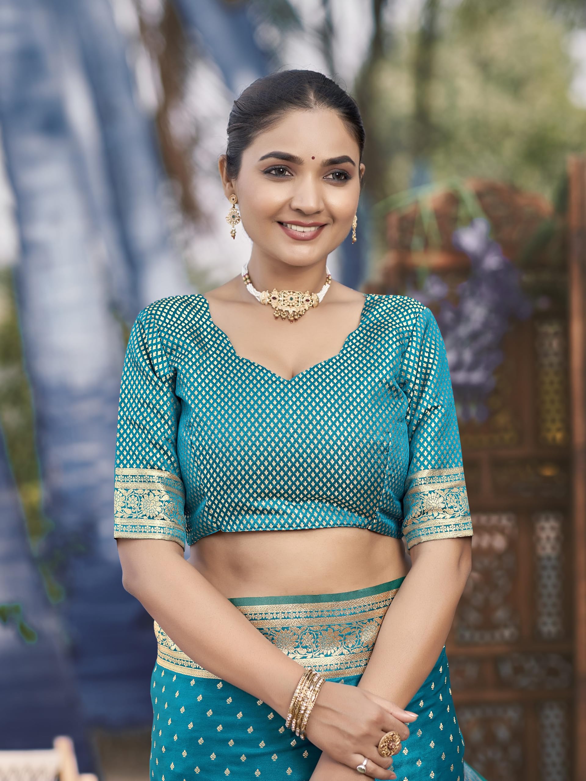 • Saree Color:Turquiose Blue, Blouse Color:Turquiose Blue