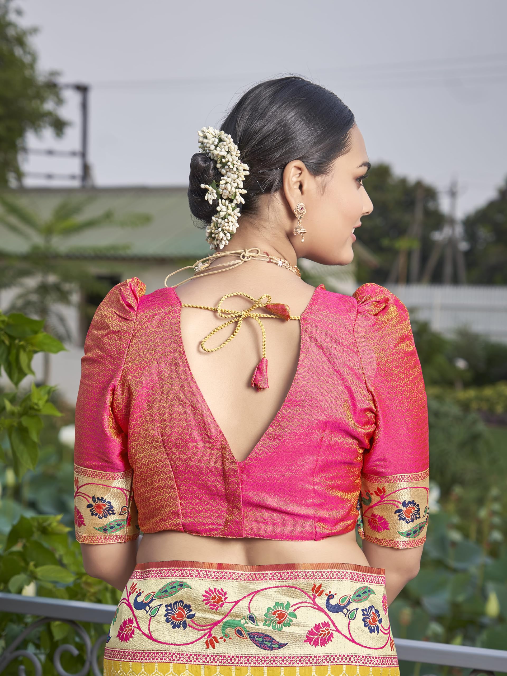 - Saree Color:Yellow, Blouse Color:Pink