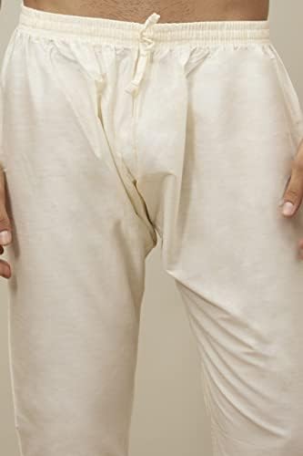 Manyavar ART SILK OFF WHITE / CREAM All over self design Full Sleeve Mandarin Collar Kurta Set