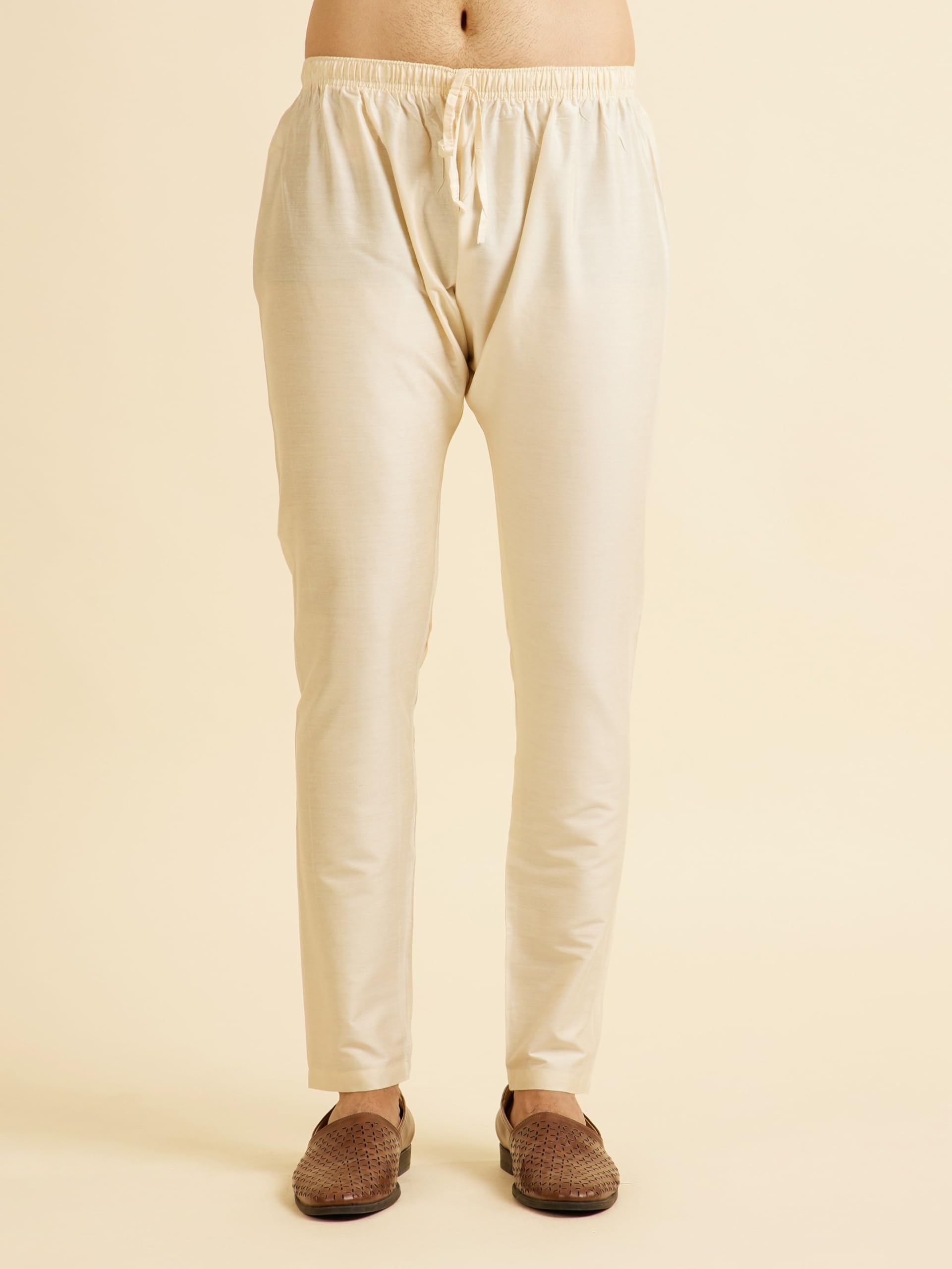 Manyavar OFF WHITE / CREAM Full Sleeves Mandarin Collar Kurta Set