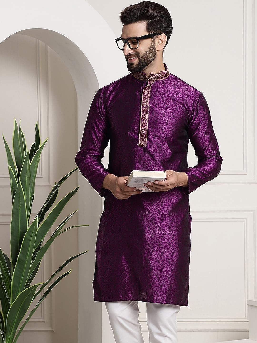 Add to cartRoyal Kurta Men’s Silk Blend Black Color only Long Kurta with Neck Embroidery (40, Purple)