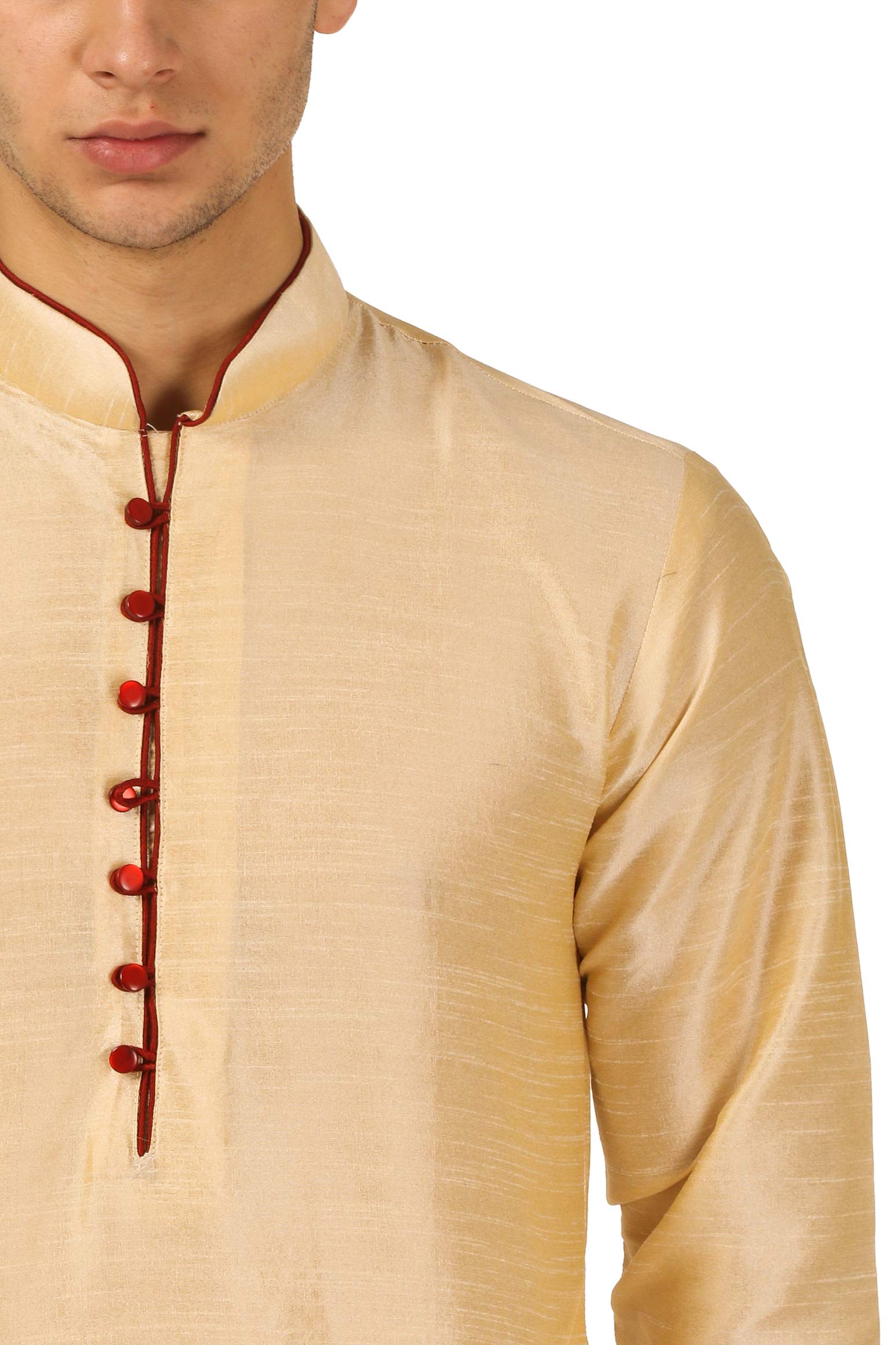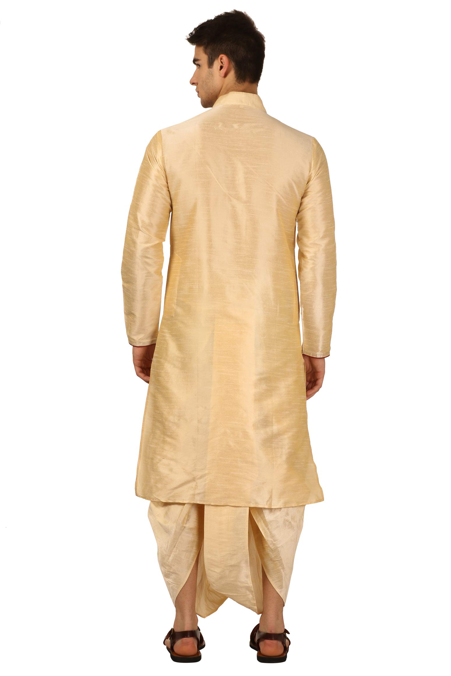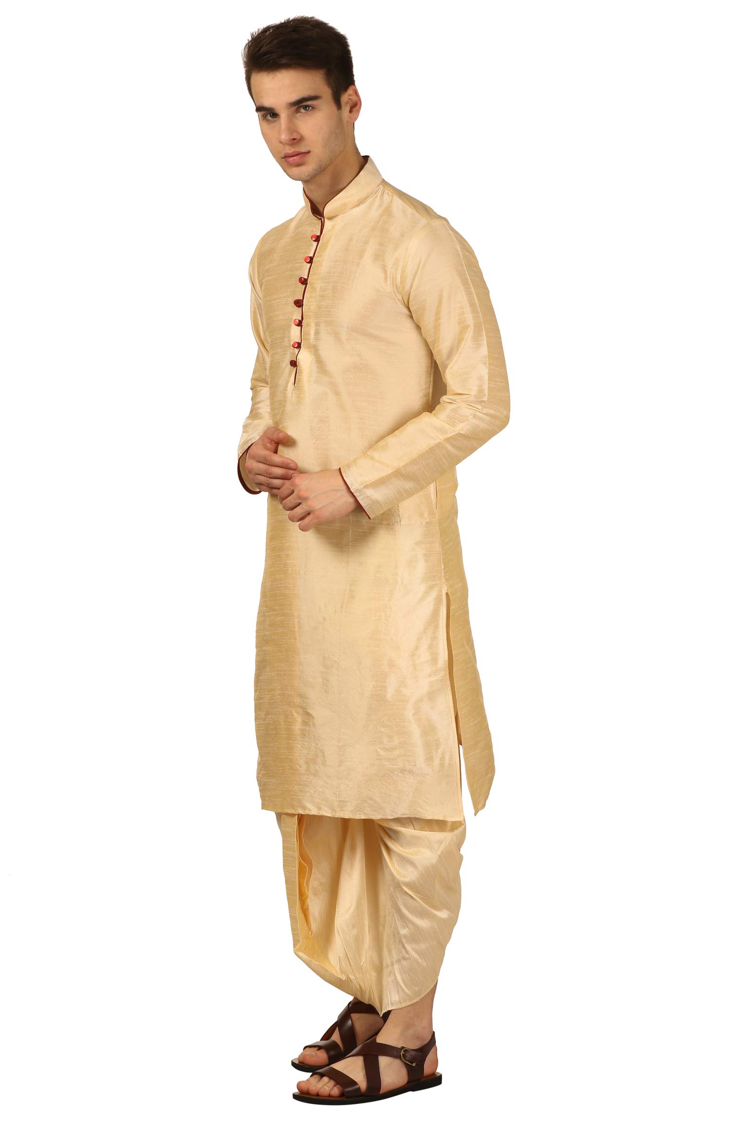Royal Kurta Mens Silk Blend Loop Button Kurta and Dhoti Set (42, Gold)
