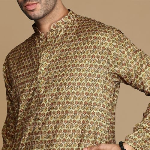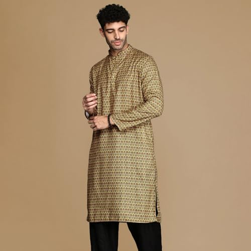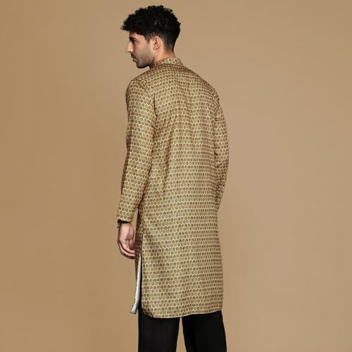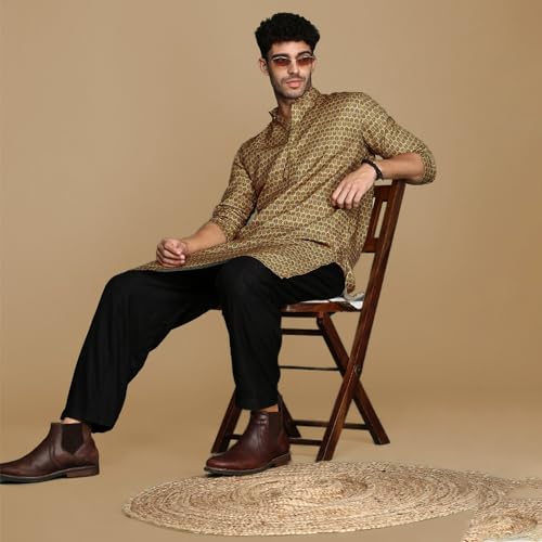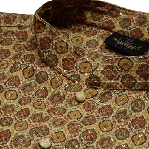Sanwara Dapper & Dazzling Men’s Printed Brown Sequins Touch Up Cotton Kurta (42)