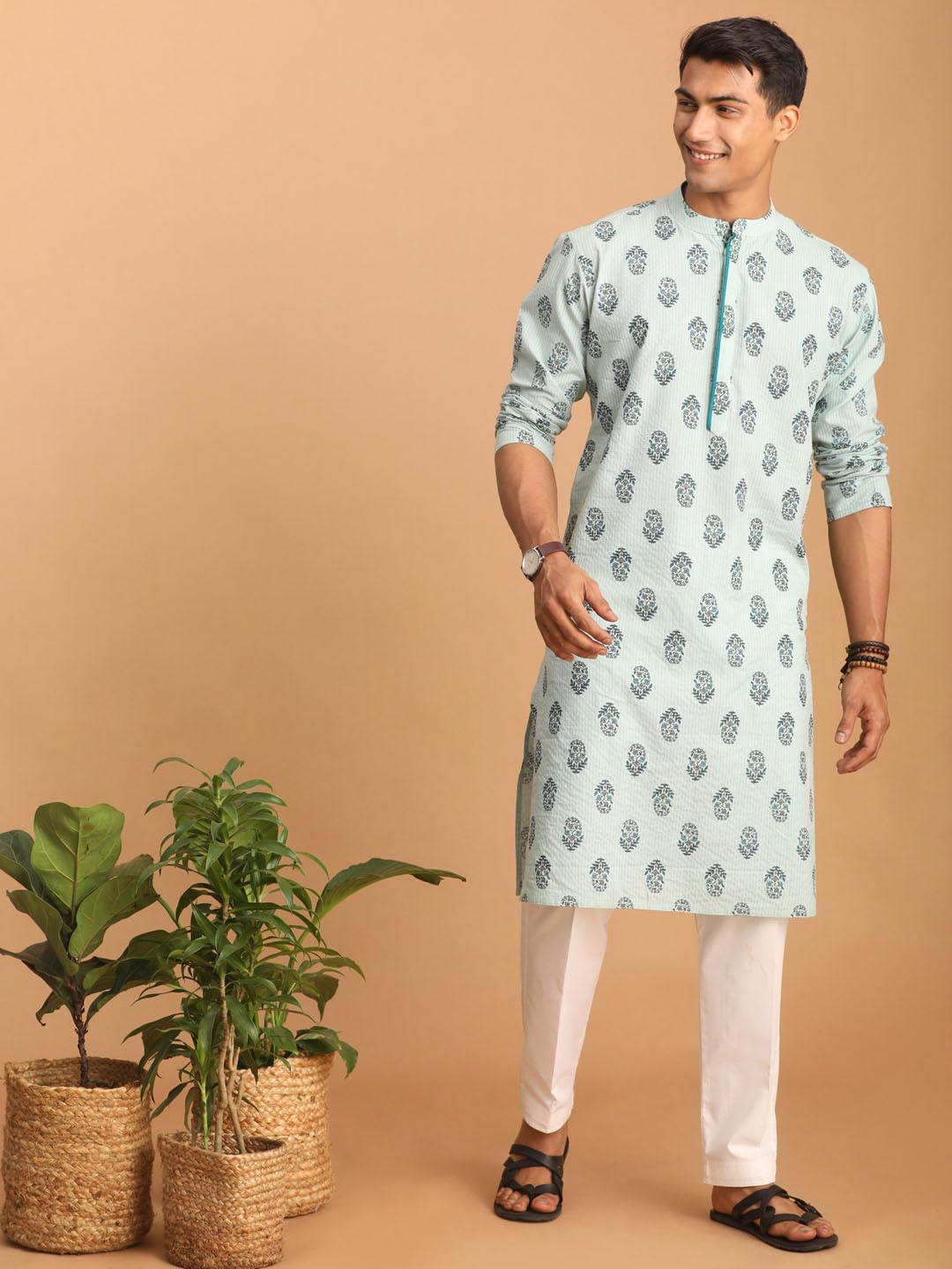 Shvaas By Vastramay Men’s Aqua Cotton Knee Length Kurta – L_VSHVMK195_40