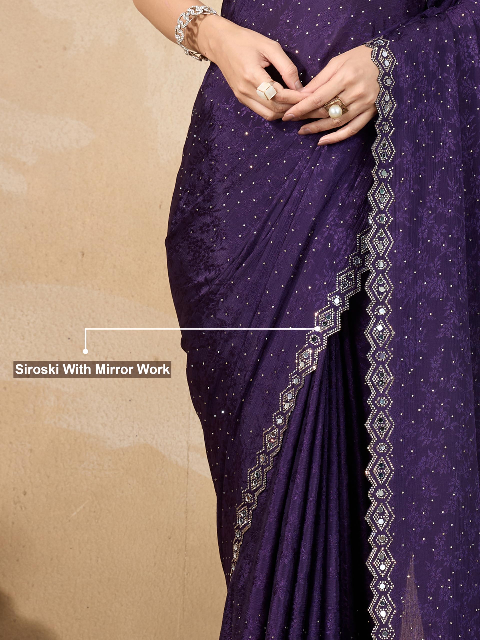 TRENDMALLS Women’s Art Silk Siroski Mirror Work Saree with Unstitch Blouse Piece (K1156-Purple)