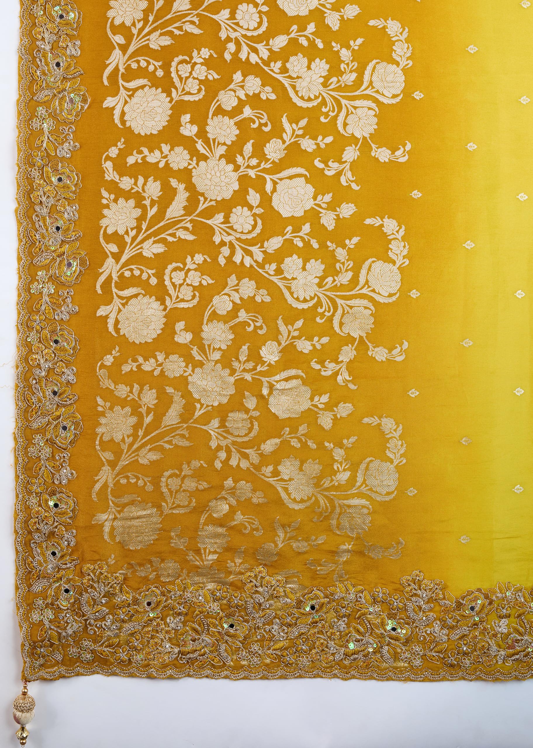 TRENDMALLS Women's Jacquard Silk Embroidery Saree with Unstitched Blouse Piece (K1178-Yellow)