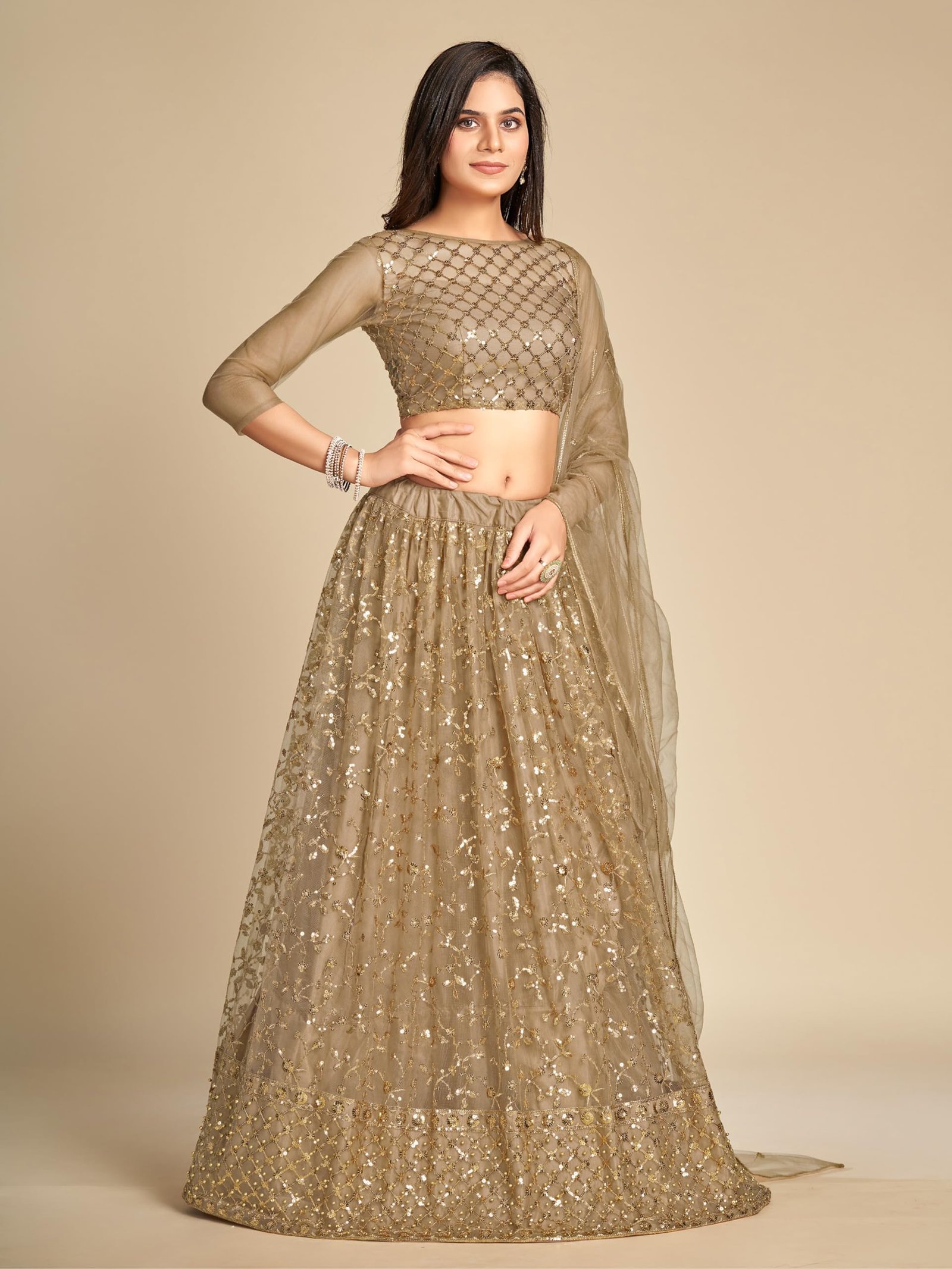 Zeel Clothing Women’s Sequins Zari Embroidered Georgette Semi Stitched Lehenga Choli With Dupatta (302-Grey-Wedding-Bridal-Latest-New; Free Size) (Grey)