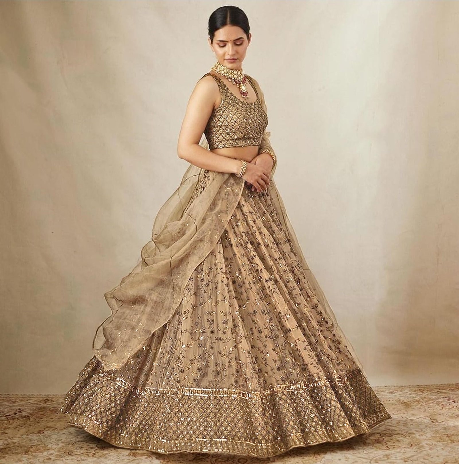 - Color: Lehenga: Gold; Choli: Gold; Dupatta: Gold