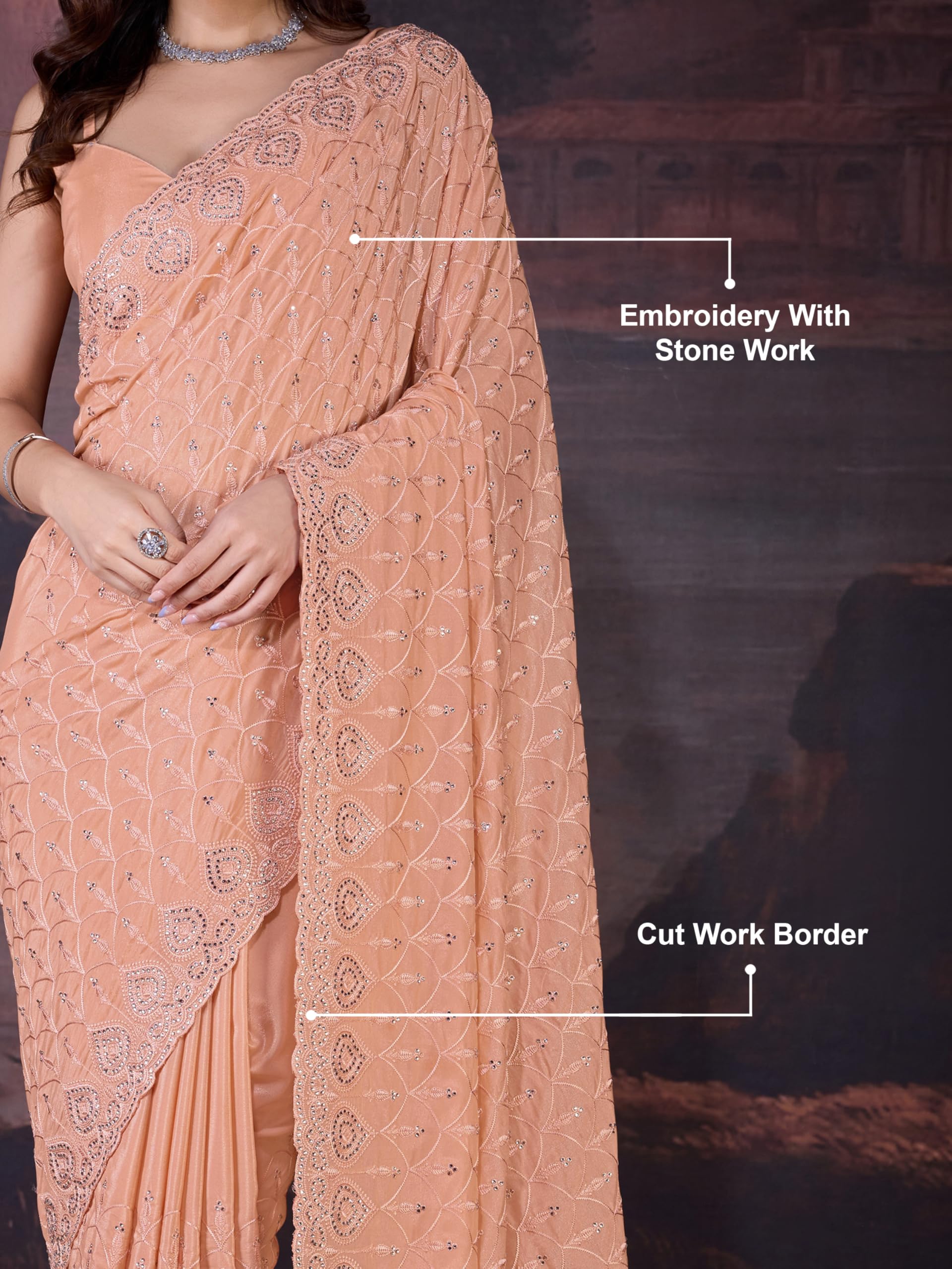 SIRIL Women’s Satin Silk Hot Fixing Stone Work Saree with Unstitched Blouse