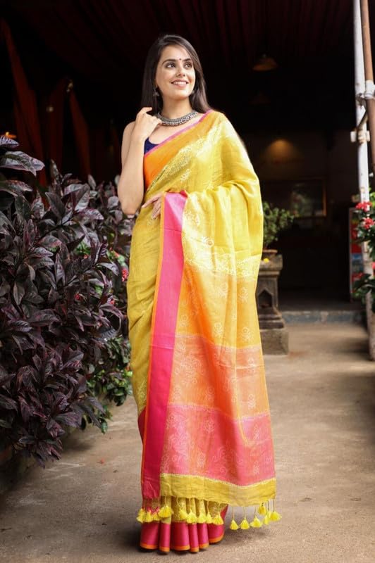 - Perfect Summer Saree: Ideal for formal and casual occasions, this pure linen saree offers a stylish look that’s perfect for the summer season. The lightweight fabric ensures comfort, while the enchanting colors add a touch of freshness to your outfit.