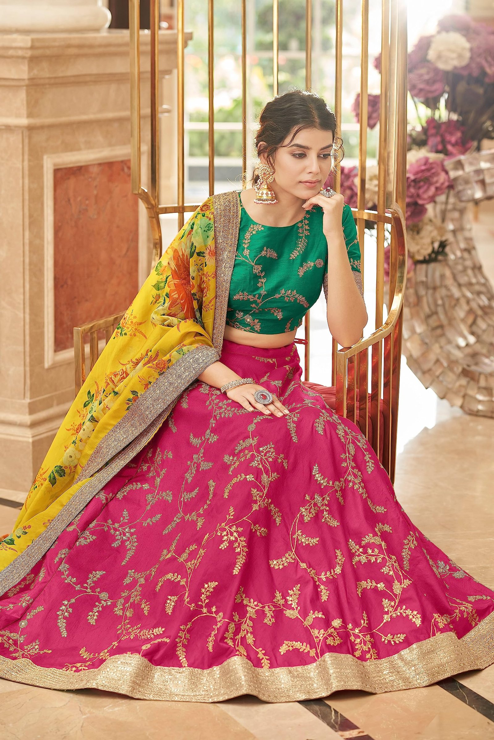 Zeel Clothing Women's Art Silk Semi-Stitched New Lehenga Choli with Dupatta (7425-Pink-Wedding-Bridal-Latest-New; Free Size) (Pink-Green)